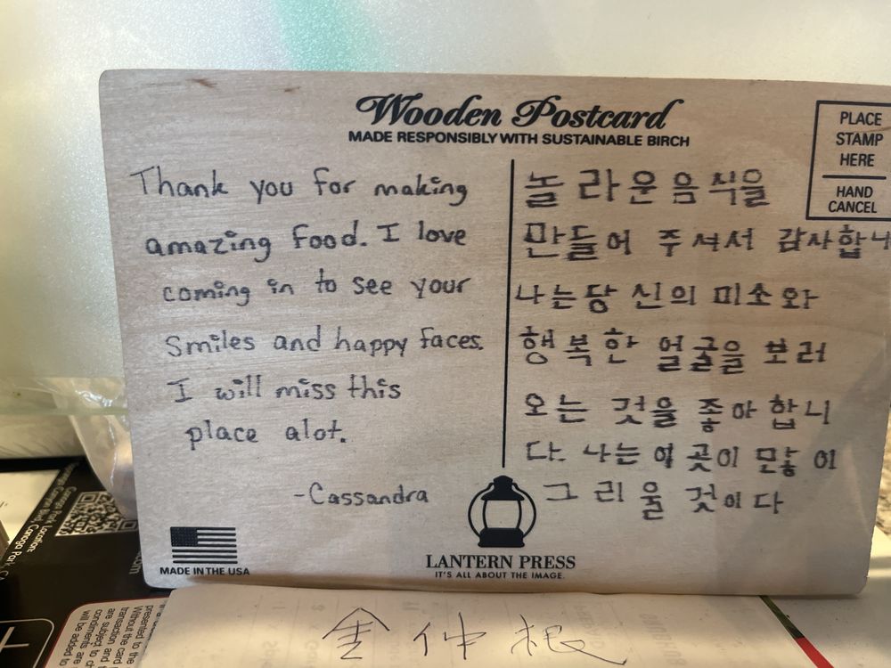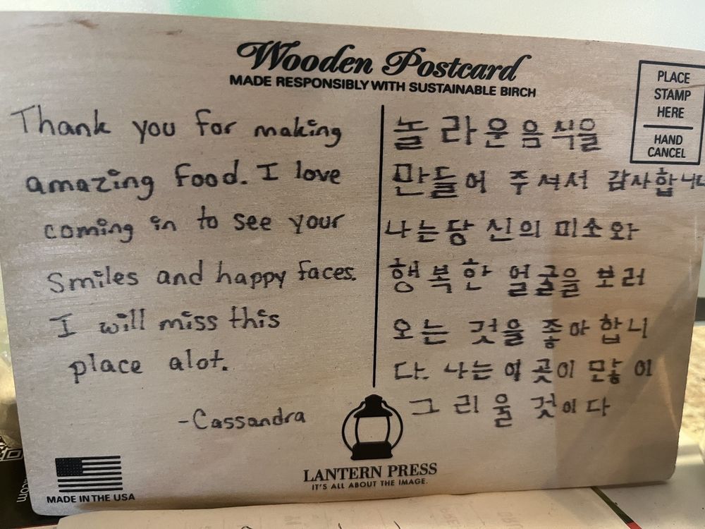 K(orean) F(ried) C(hicken) Rice Burrito with Korean Seaweed, Kimchi, Green onion, Fried onion, Green Leaf, Cucumber and Egg (option: Spicy Pepper Sauce)