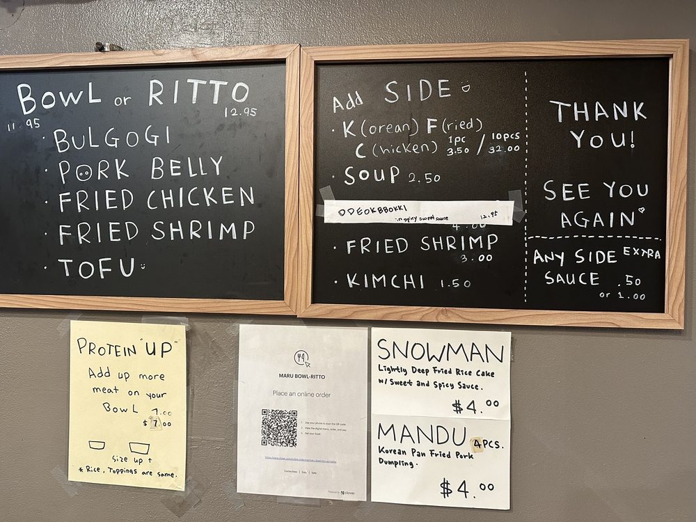 Maru Bowl - Ritto is a Korean restaurant in Winnetka, CA that offers a variety of delicious dishes. Their Korean BBQ Bowls, including Bulgogi Kimchi and Pork Belly options, are flavorful and satisfying. The Korean (Bu)Rittos are a unique twist, combining rice burritos with Korean flavors like seaweed, kimchi, and fried onion. Customers rave about the quality and flavor of the food, with reviewers praising the Bulgogi Bowl and Pork Bowl in particular. The owners and staff provide excellent service, creating a welcoming atmosphere for diners. For those looking for a tasty and authentic Korean dining experience, Maru Bowl - Ritto is a must-try.